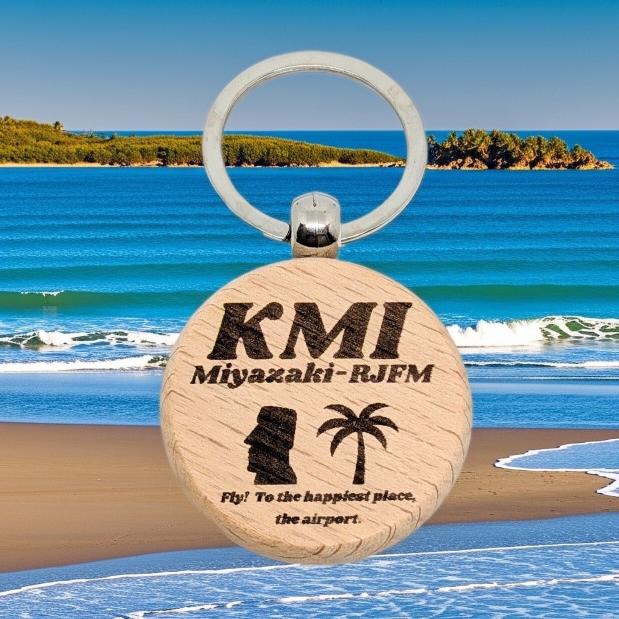 3レター・ご当地ステッカー【KMI・宮崎】のデザインを使用した、オリジナルのウッド・キーリングを作製しました!