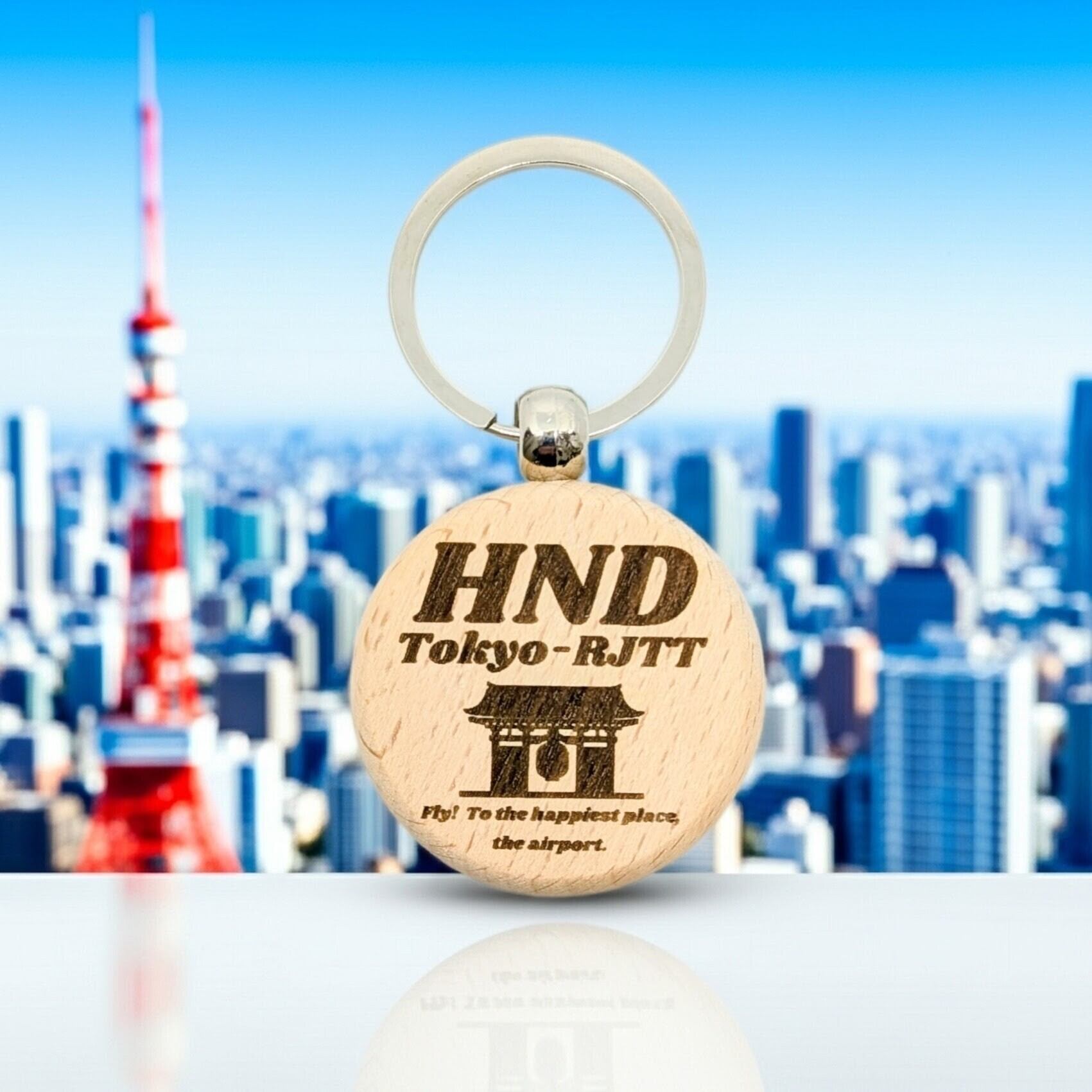 【東京・HND】空港コード刻印 木製キーリング プレゼント 飛行機