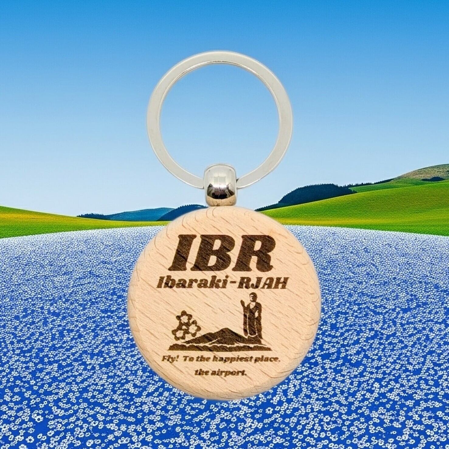 茨城空港のIATA3レターコード「IBR」を、温もりのある天然木に刻印したキリシマ飛行機オリジナルの木製キーリングができました。