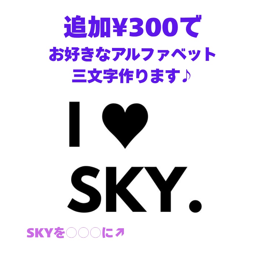 ※追加料金¥300で、裏面のI♡以降の三文字をお好きな文字に変更することができます。